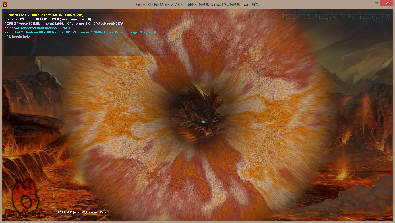 Разгон встроенного видео также оказался по плечу этой «материнке». Стабильная работа была зафиксирована на отметке 1023 МГц.