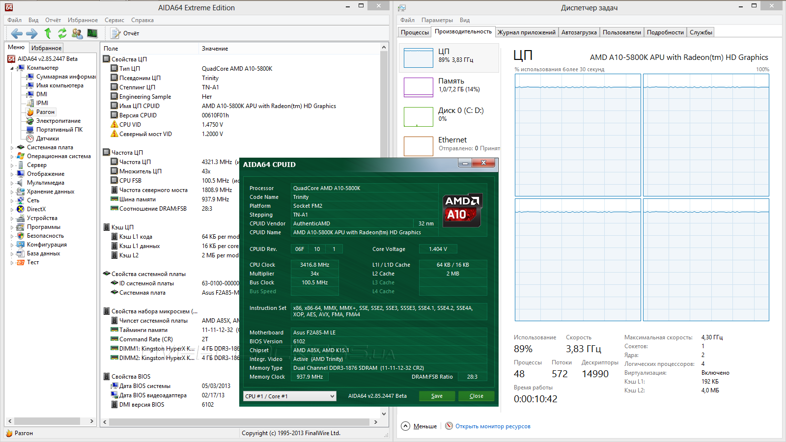 - процессор: AMD A10-5800K (3,8 ГГц);