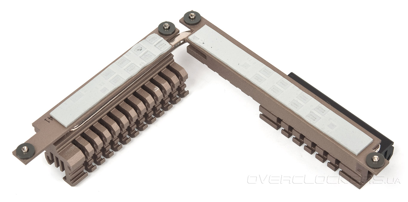 Чипсет охлаждается массивным радиатором, закрепленным к плате посредством подпружиненных винтов.