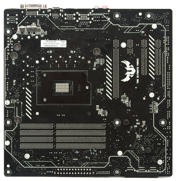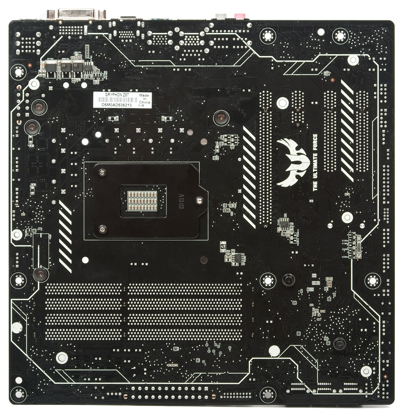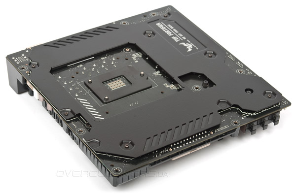 Обратная сторона практически лишена элементов. Небольшая группа расположилась в зоне VRM процессора. Таким образом инженеры высвободили место на лицевой стороне для возможной установки вентилятора.