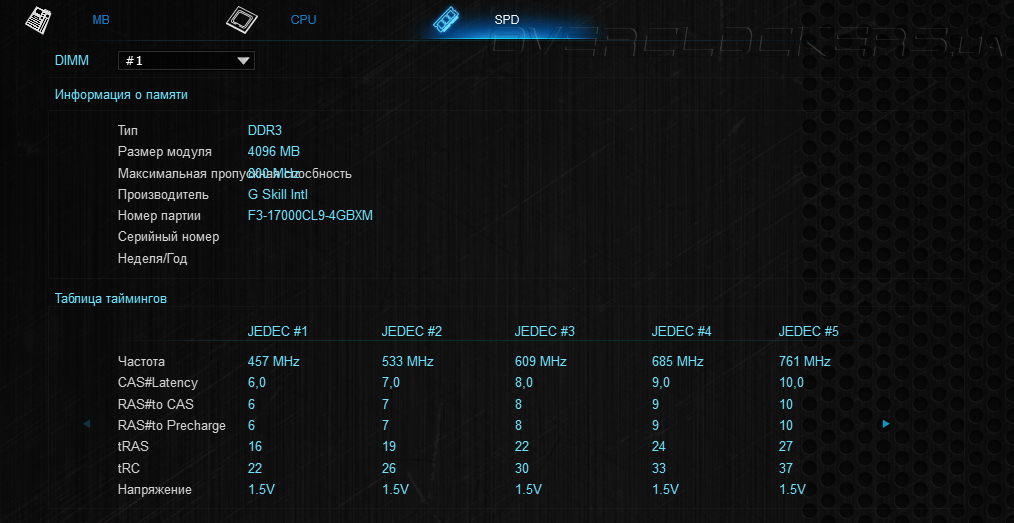 В разделе Tool находятся инструменты, позволяющие: сохранить профиль с настройками в один из восьми слотов (или на внешний накопитель) с заданием при этом метки, обновить прошивку, посмотреть содержимое SPD модулей памяти.