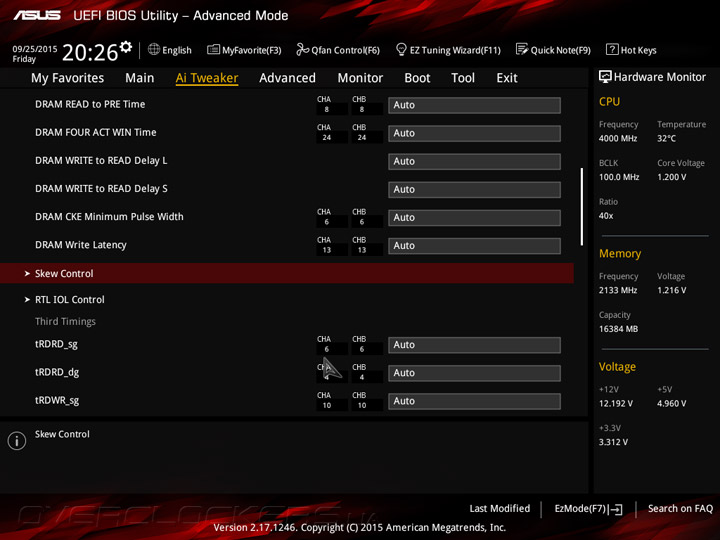 Несмотря на неспособность новинки к повышению тактовой частоты ОЗУ возможности управления таймингами и другими параметрами оперативной памяти, сосредоточенные в подменю DRAM Timing Control, ничуть не уступают лучшим оверклокерским «материнкам» ASUS.