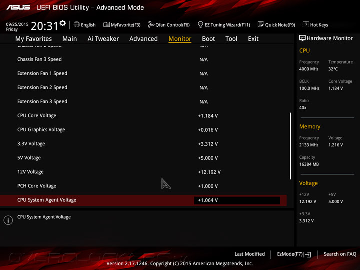 | CPU System Agent Voltage Offset | 0,7–1,685 | 0,005 |