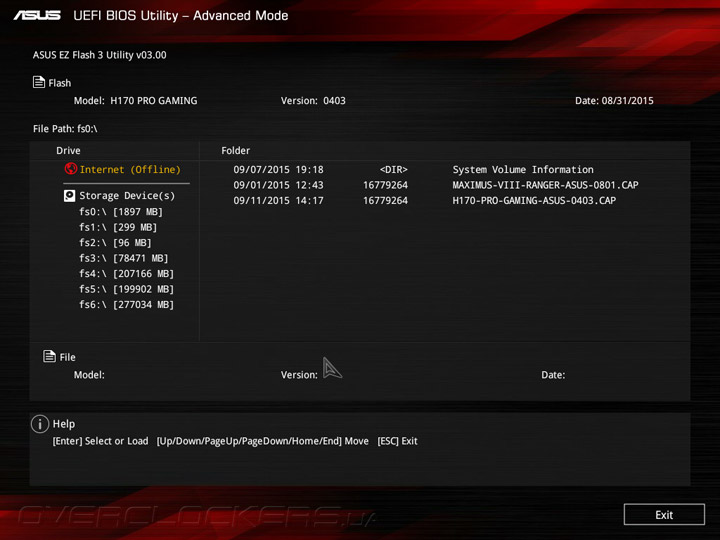 Из дополнительных возможностей прошивка ASUS H170 Pro Gaming может похвастаться наличием подпрограммы обновления управляющего микрокода с возможностью загрузки свежей версии UEFI из Интернета, функцией сохранения восьми профилей с пользовательскими настройками и утилитой SPD Information для просмотра параметров по умолчанию модулей ОЗУ.