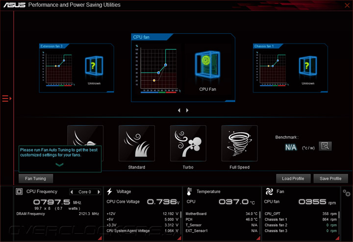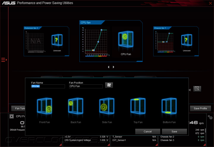 За настройки функционирования системы охлаждения отвечает программный модуль Fan Xpret 3. С его помощью пользователи могут определить расположение каждого из вентиляторов и откалибровать их скорости вращения. Кроме того, Fan Xpret 3 дает возможность выбрать один из четырёх предустановленных профилей или настроить скорости «карлсонов» вручную.