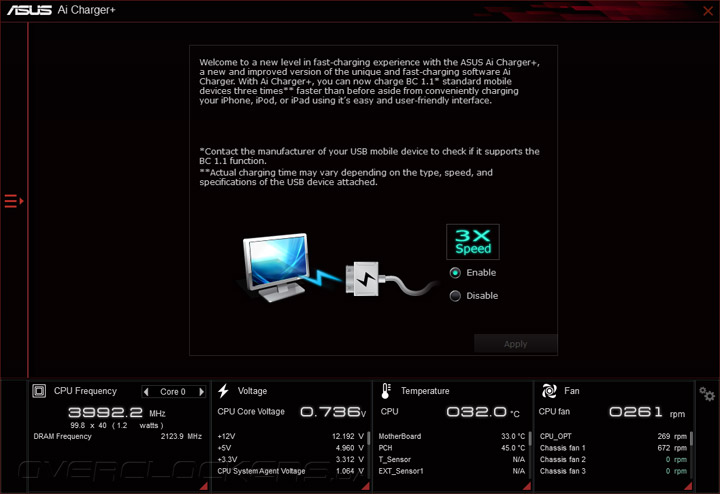 Подпрограмма Ai Charger+ поможет ускорить зарядку разнообразных гаджетов от портов USB, а модуль USB 3.1 Boost служит для ускорения работы внешних накопителей путем активации протокола UASP.