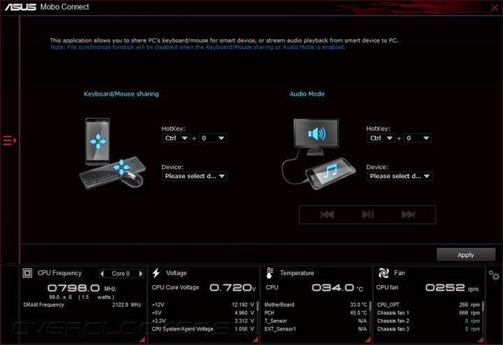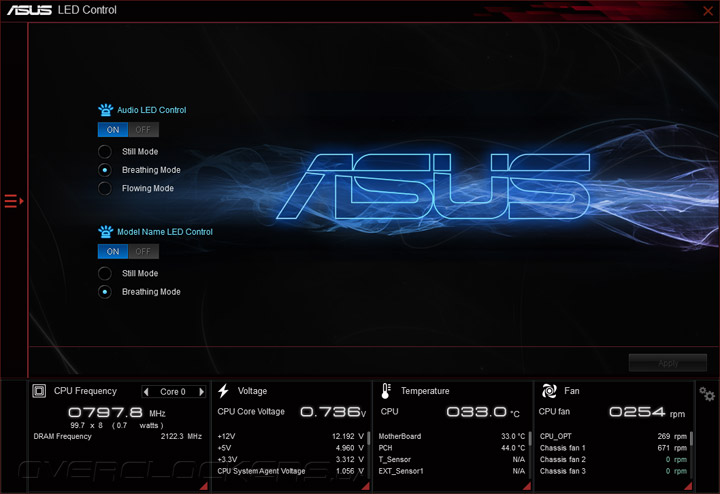 Приложение Ai Suite 3 позволяет использовать подключенную к системному блоку клавиатуру и мышь для работы на мобильном устройстве и передавать аудиопоток с гаджета на ПК, а для управления эффектами светодиодной подсветки служит программный модуль LED Control.