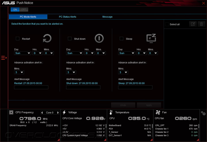 С помощью Push Notice пользователи могут настроить перегрузку, выключение и переход в спящий режим по расписанию, а также отправку уведомлений при достижении небезопасных показаний аппаратного мониторинга.