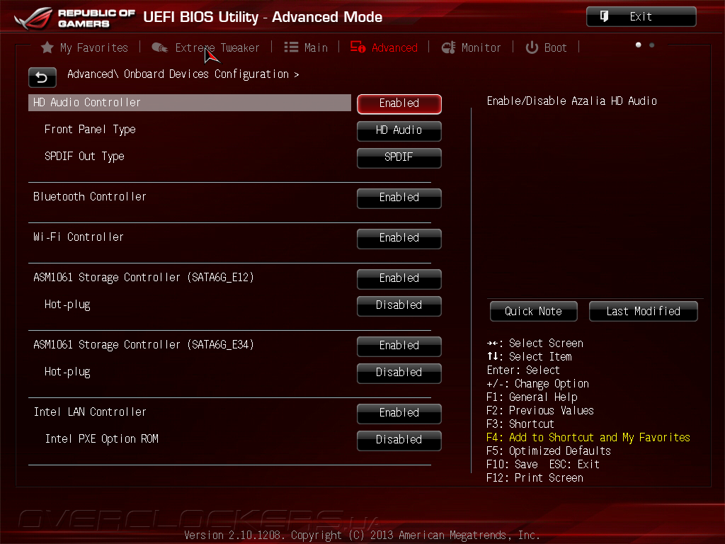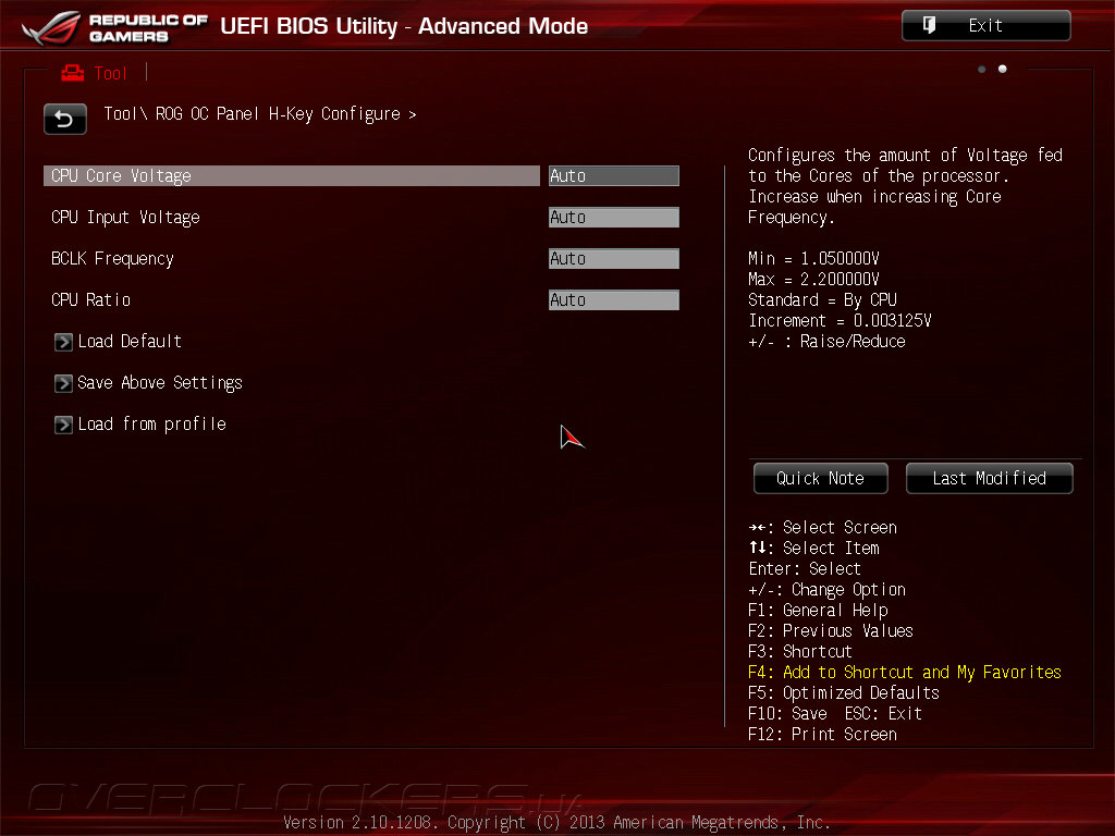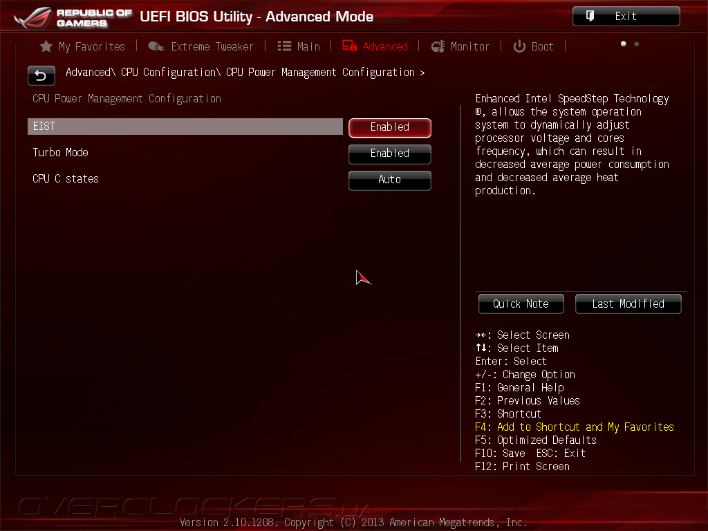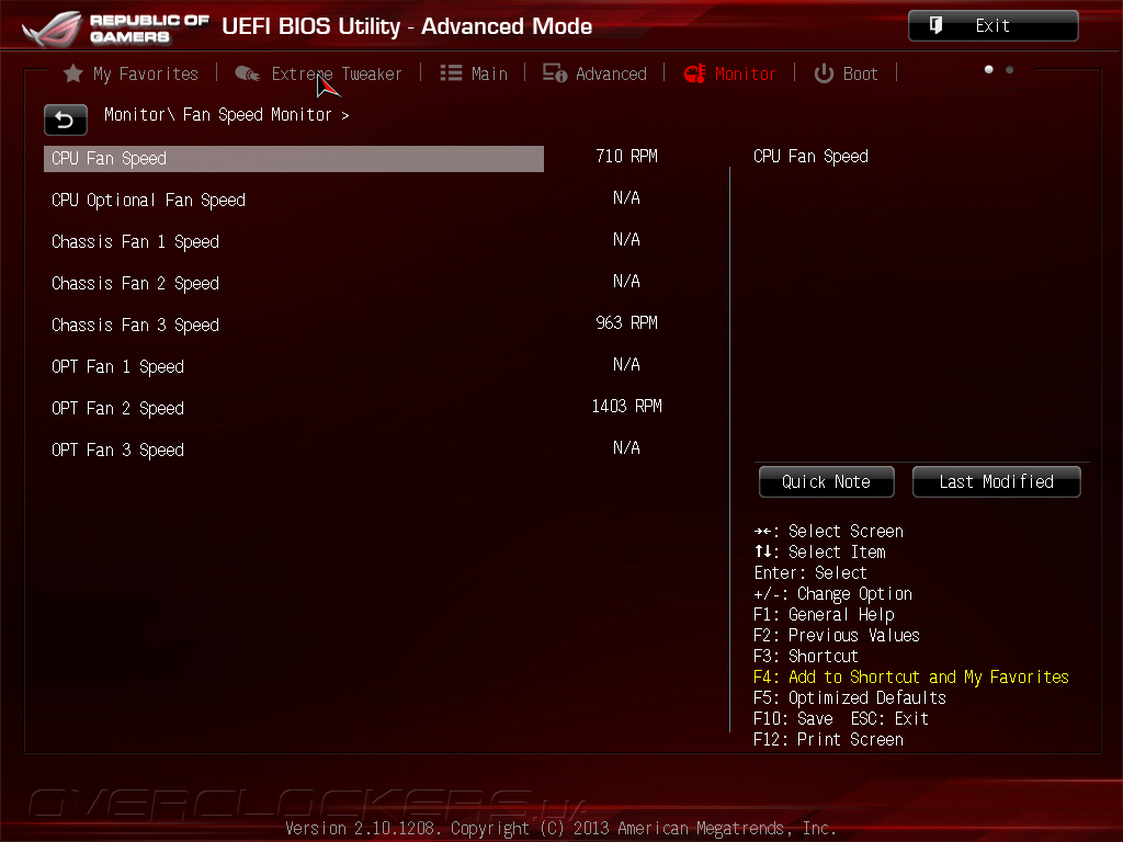 Прошивка Maximus VI Extreme базируется на управляющем микрокоде UEFI. Как и в других системных платах ASUS семейства ROG меню настройки обладает дружественным интерфейсом и богатыми возможностями для разгона. Несмотря на то, что все разделы UEFI Setup сгруппированы в логической последовательности, разработчик позаботился о пользователях и внедрил вкладку My Favorites, содержимое которой можно сформировать исходя из собственных предпочтений. Для заметок пригодится функция Quick Note, а нажав на кнопку Last Modified можно просмотреть историю изменения настроек.