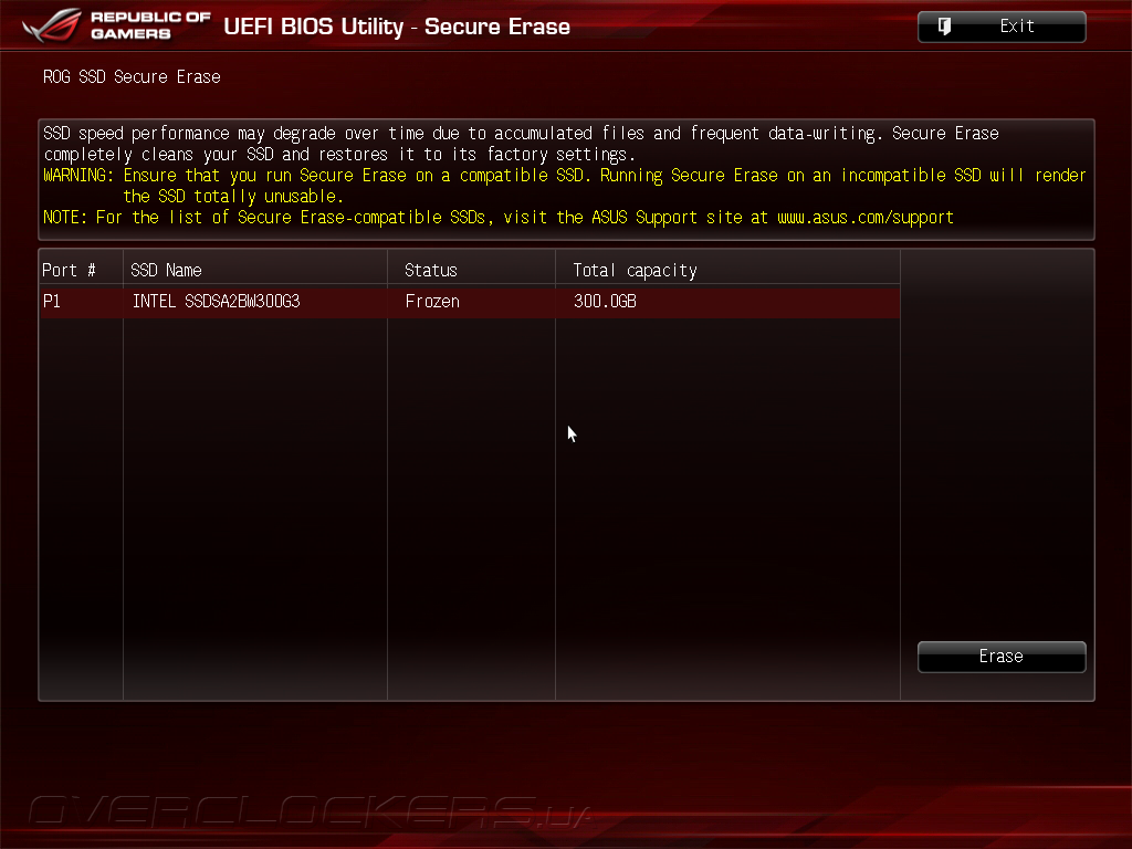Меню настройки Maximus VI Extreme имеет встроенную подпрограмму для обновления прошивки EZ Flash 2 Utility, а также оснащено уникальной функцией гарантированного удаления данных с твердотельных накопителей SSD Secure Erase.