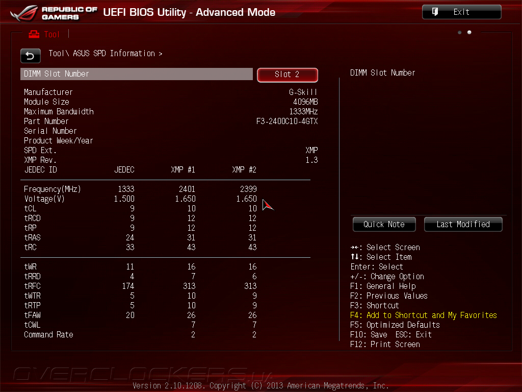 Для хранения восьми профилей с пользовательскими настройками служит функция Overclocking Profile, во вкладке SPD Information выводится подробная информация об установленных модулях ОЗУ.