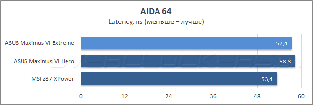В тестах пропускной способности ОЗУ новинка уверенно опередила соперниц во всех тестах, за исключением оценки латентности, где она немного уступила системной плате MSI Z87 XPower.