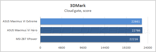 Героиня сегодняшнего обзора уверенно выступила и в игровом бенчмарке Futuremark 3DMark, лишь чуть уступив системной плате Maximus VI Hero, но опередила модель от MSI.