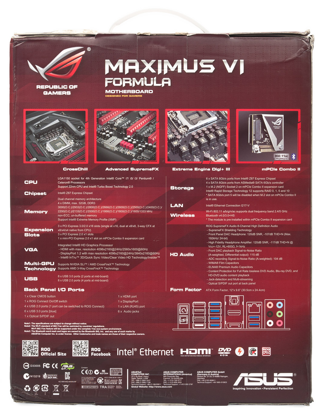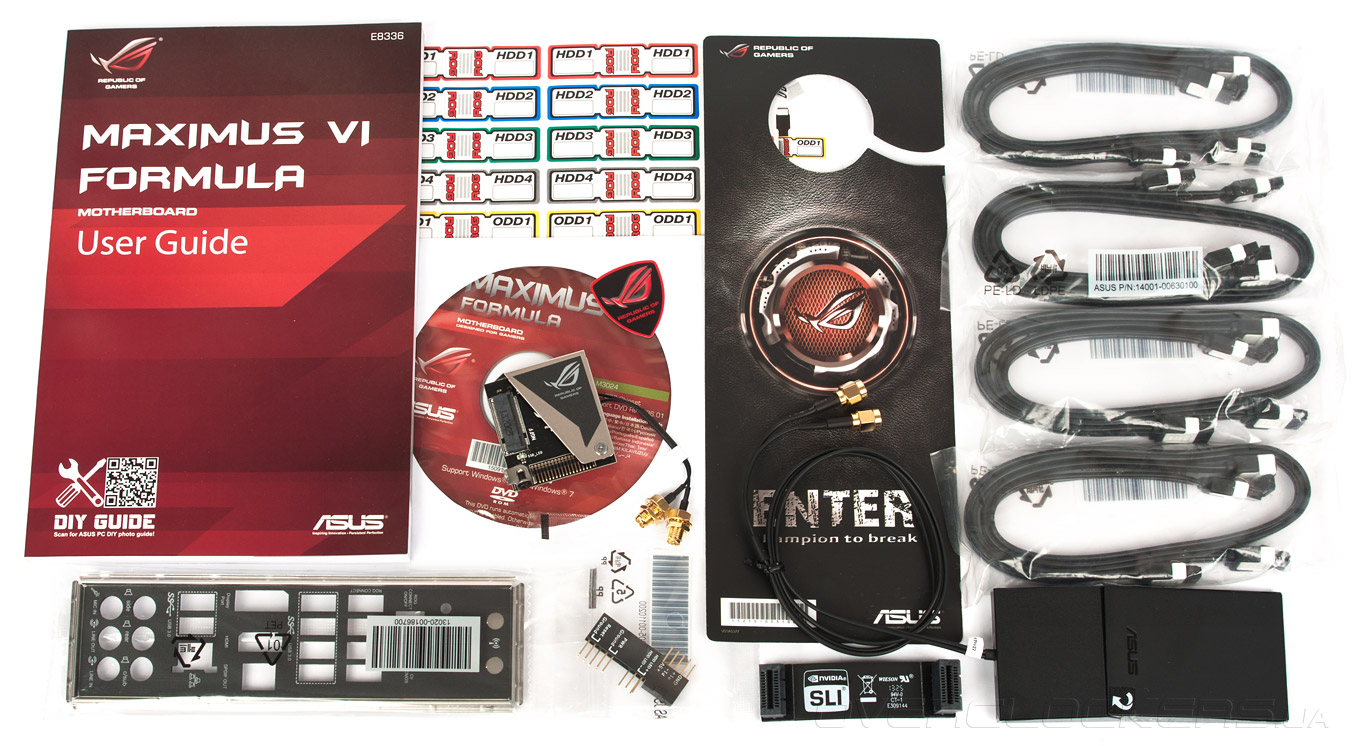Как и подобает продукту из серии Republic of Gamers, ASUS Maximus VI Formula имеет богатый набор аксессуаров, включающий: