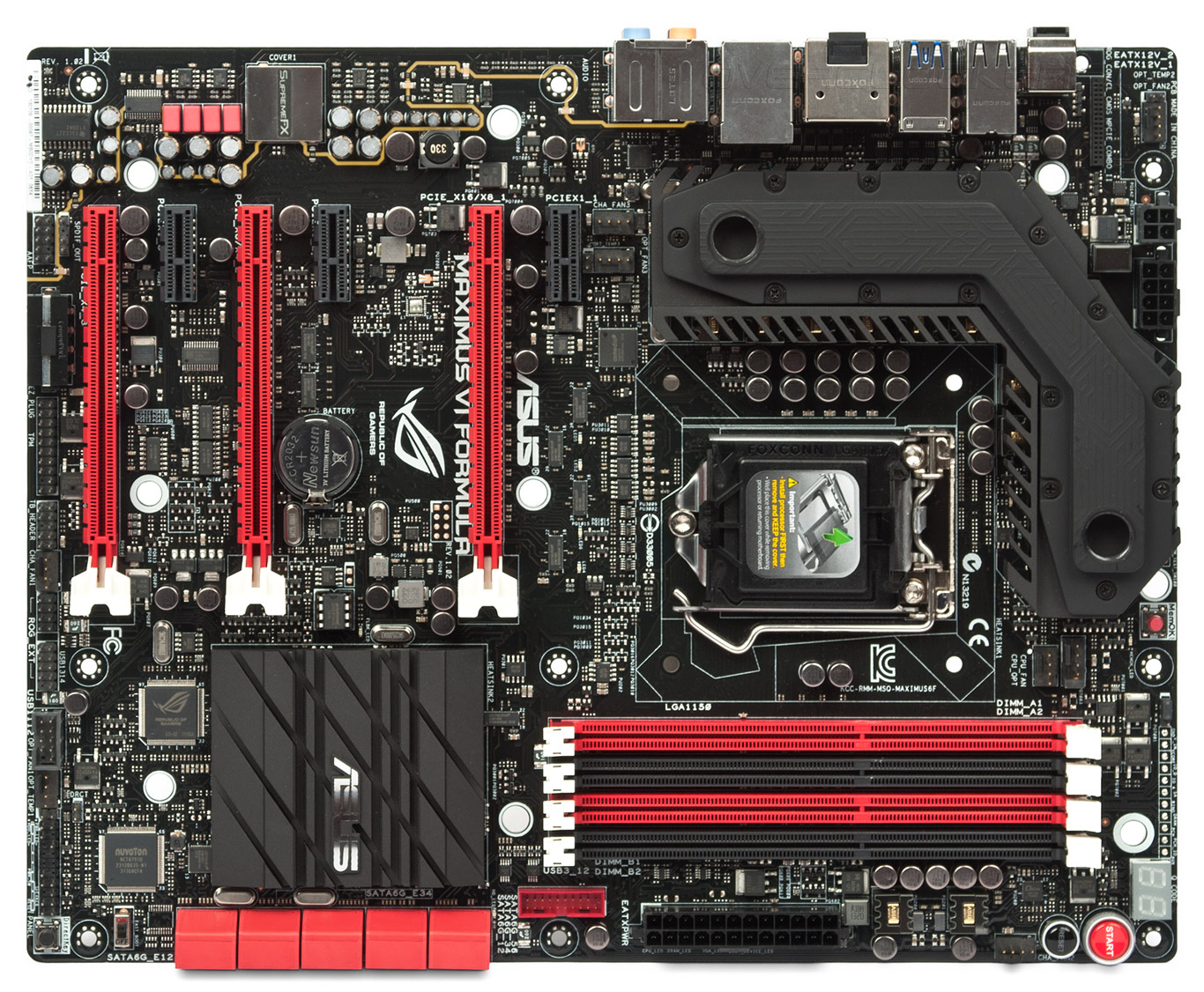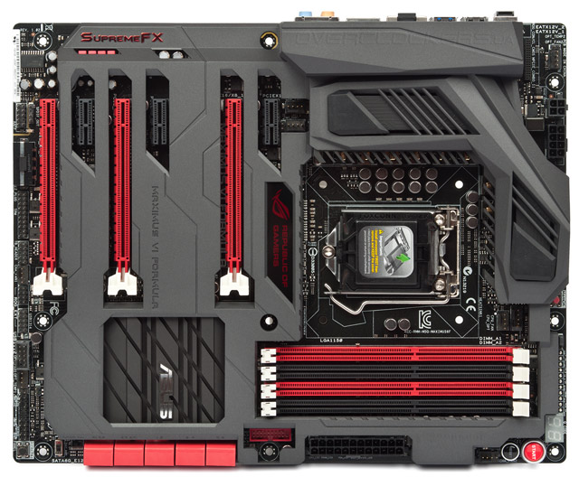 Внешний вид Maximus VI Formula совершенно неординарный, всю поверхность материнской платы покрывает кожух ROG Armor, подобный тем, что встречаются на моделях ASUS Sabertooth.