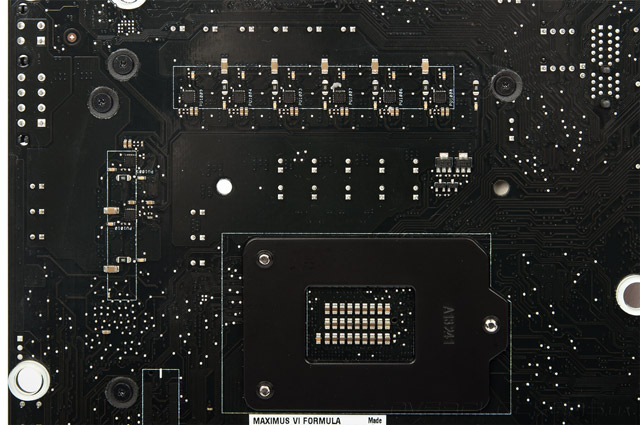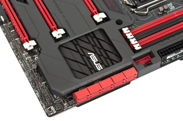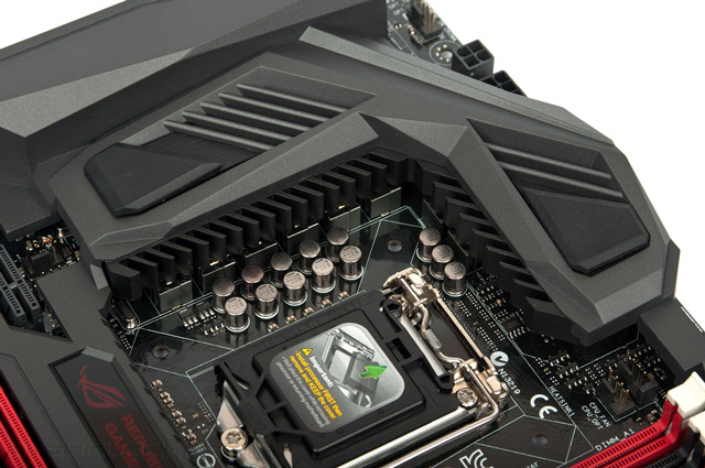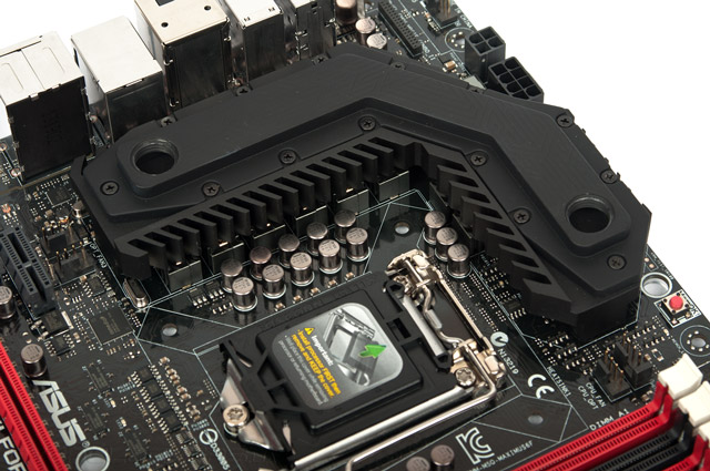 Из спорных решений отметим тот факт, что ROG Armor частично накрывает радиаторы силовой подсистемы, и, если так же ASUS Sabertooth Z87 комплектовалась 40-мм вытяжным вентилятором, то новинка данной опции лишена. Зато, Maximus VI Formula позволяет подключить систему охлаждения VRM к контуру СВО, для чего под резиновыми заглушками скрываются отверстия для установки фиттингов.