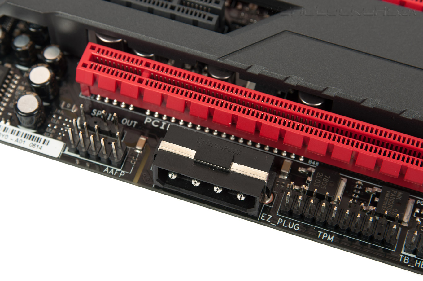 На левом краю системной платы находится стандартный разъем типа «молекс», его рекомендуется использовать при установке нескольких мощных графических ускорителей.