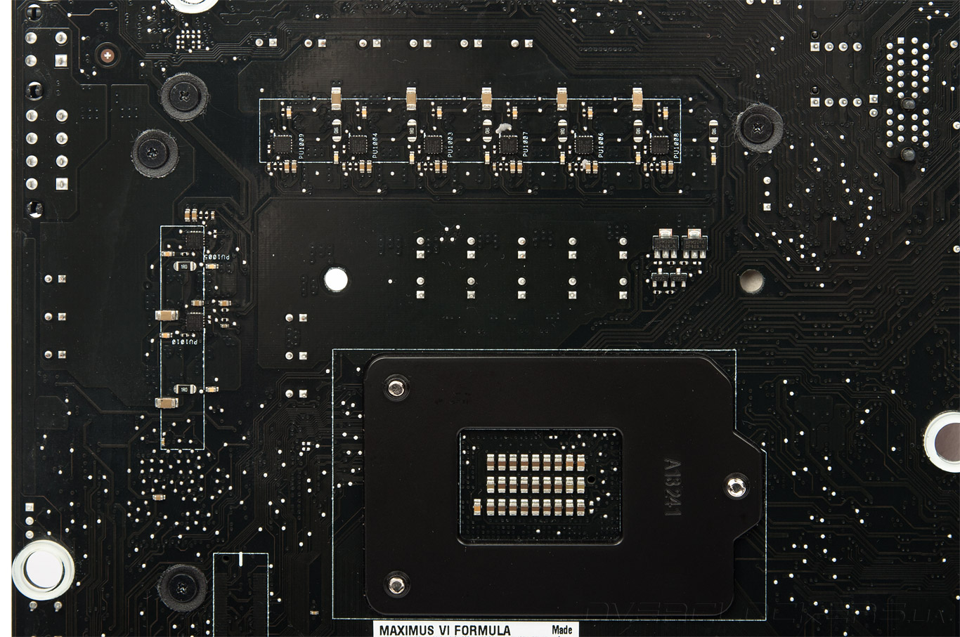 Силовая подсистема Maximus VI Formula состоит из восьми фаз, формирующих напряжение VCCIN. Преобразователь управляется цифровым контроллером DIGI+ VRM, который поддерживает компенсацию от падения напряжения Load-Line Calibration и отключение неиспользуемых фаз. Напряжения к VRM подается посредством пары разъемов: черытерхконтактного AXT12V и восьмиконтактного EPS12V, но их совместная работа может понадобиться только при экстремальном разгоне.