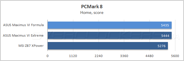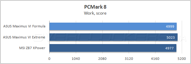 Судя по результатам в тестовом пакете Futuremark PCMark 8 при работе с прикладными программами Maximus VI Formula демонстрирует отличное быстродействие, разделив первое место с другой моделью ASUS — Maximus VI Extreme.