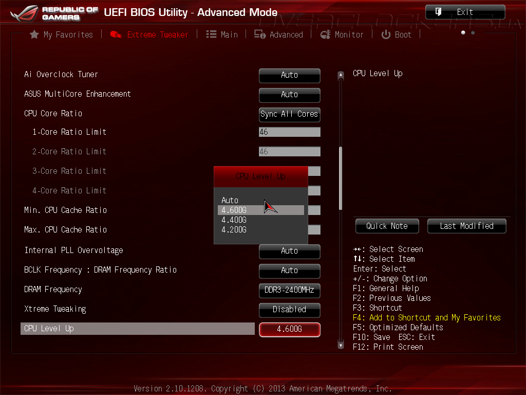 В разделе Extreme Tweaking включается режим энергосбережения EPU Power Saving mode и запускается функция автоматического разгона CPU Level Up, которая предлагает выбрать один из трех профилей быстродействия.