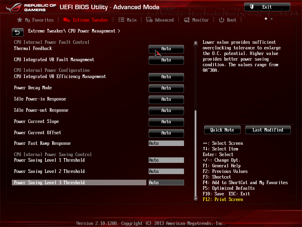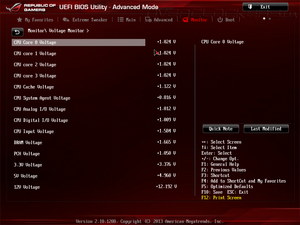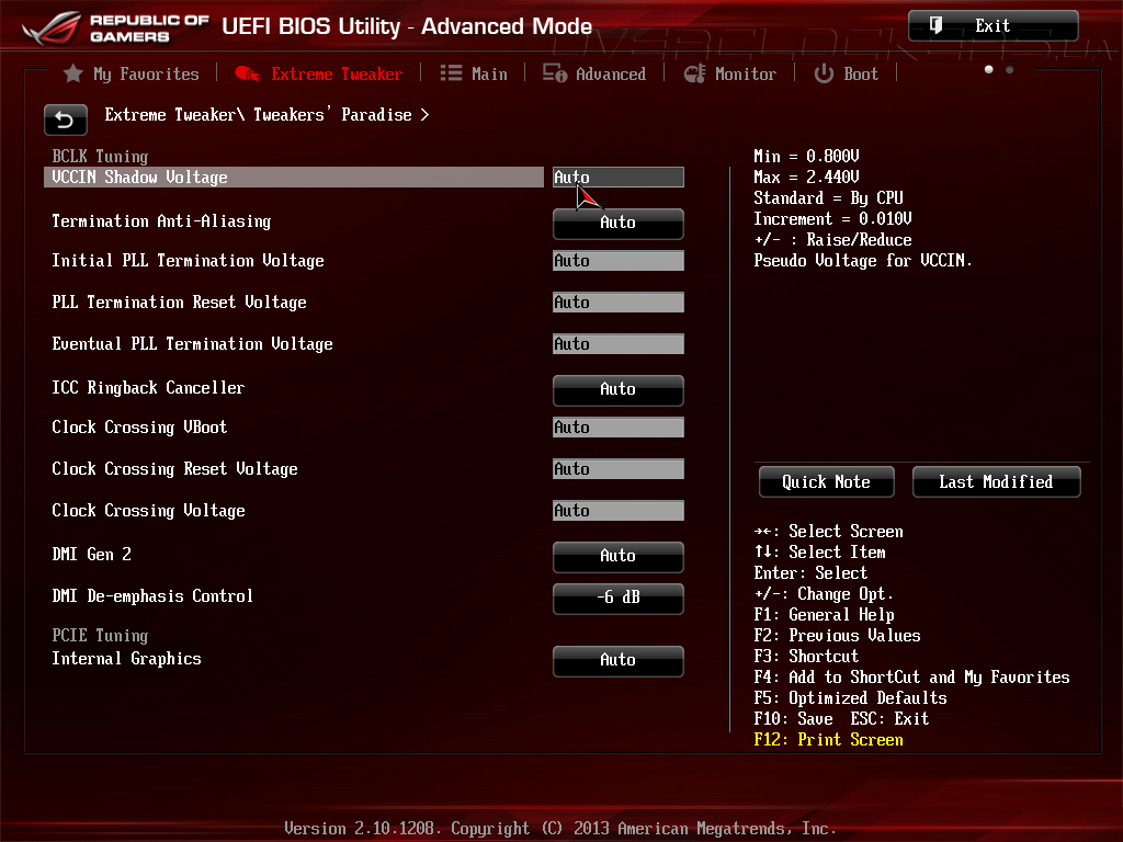 Для вычислительных ядер, Uncore-части и графического ускорителя центрального процессора доступны три режима управления напряжения: Override, Offset и Adaptive. Первый позволяет задавать значение в явном виде, но ценой потери работоспособности энергосберегающих технологий. Второй подразумевает указание прироста относительно штатного значения, а третий — Adaptive — сочетает преимущества обеих режимов. Интересной особенностью прошивки является возможность двухступенчатой регулировки напряжение Vccin. При инициализации процессора подается значение, равное параметру Initial CPU Input Voltage, а после загрузки ОС напряжение повышается до Eventual CPU Input Voltage.