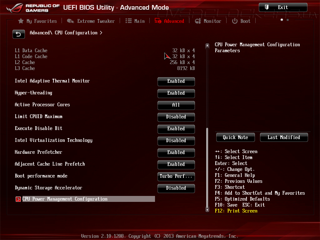 Здесь же также включаются некоторые специфические функции, такие как Hyper Threading, технология виртуализации и аппаратная защита от вирусов, а в подменю CPU Power Management Configuration настраивается работа энергосбережения.