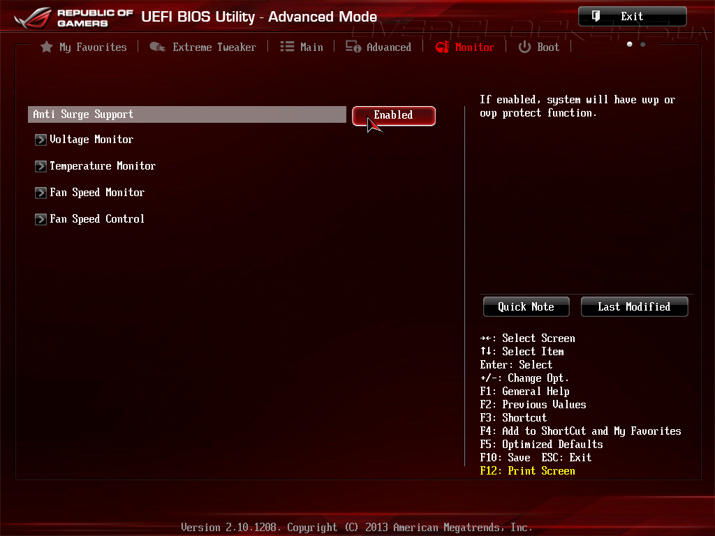 Возможности аппаратного мониторинга прошивки сосредоточены в разделе Monitor, где также находится включение защиты от перепадов напряжения Anti Surge Support.