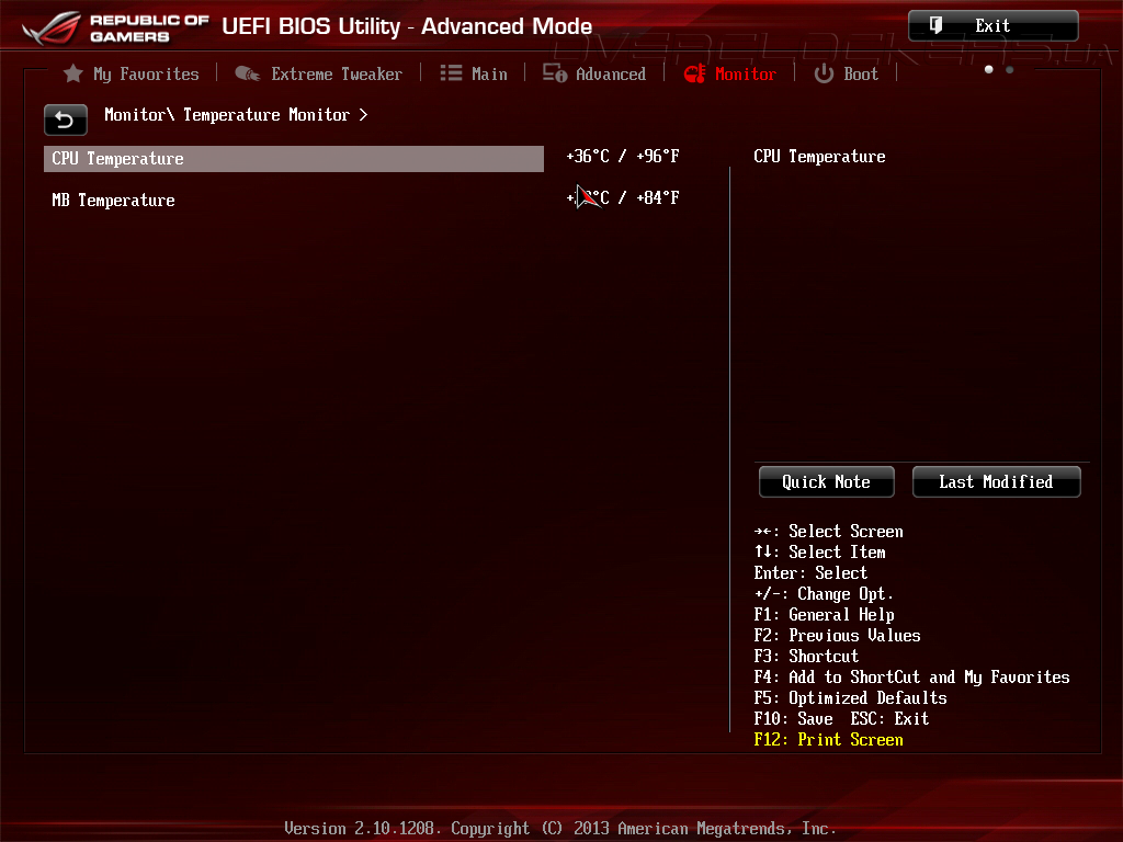 Увы, подобно старшим моделям из серии Republic of Gamers новинка не поддерживает подключение внешних термодатчиков, поэтому, в меню Temperature Monitor отображаются только две температуры — на процессоре и материнской плате.