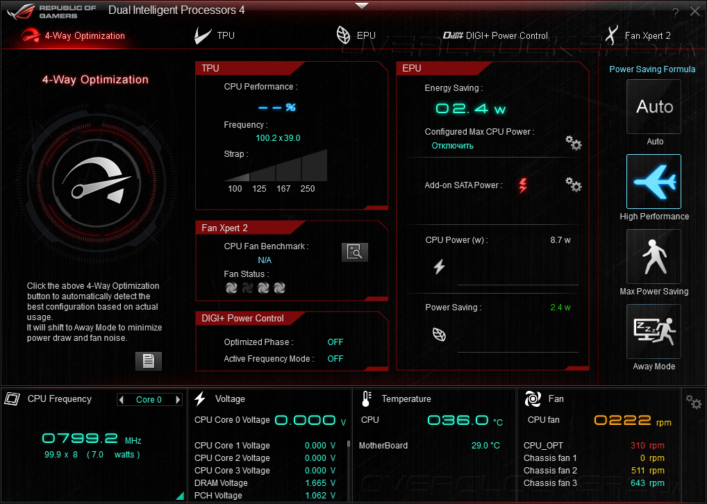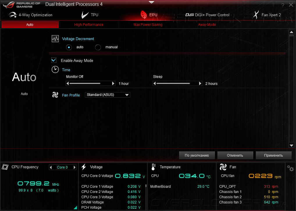 Помимо этого, AI Suite 3 позволяет регулировать напряжение на центральном процессоре и основных компонентах материнской платы.