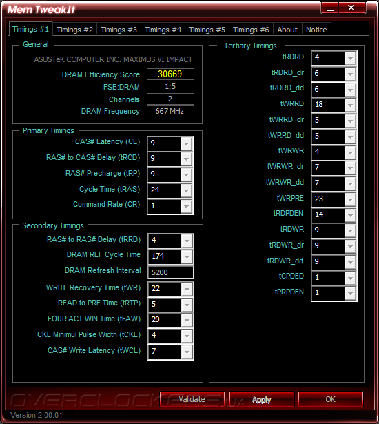 При разгоне оперативной памяти героиня сегодняшнего обзора показала очень хорошие результаты, для нашего штатного набора оперативной памяти G.Skill F3-2400C10D-8GTX покорились 2580 МГц с таймигами 11-13-13-36-2Т при напряжении 1,65 В.