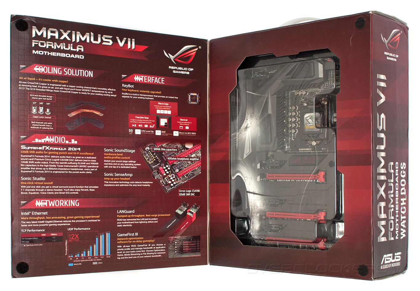 Большая часть информации про дизайнерские изыски ASUS Maximus VII Formula приведена на обратной стороне фальш-крышки. Под ней распложено прозрачное пластиковое окно, сквозь которое можно любоваться внешним видом устройства.