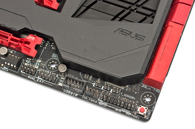 Материнская плата позволяет подключить внешний температурный сенсор, правда, самой термопары в комплекте поставки нет. Также, ASUS Maximus VII Formula поддерживает фирменную технологию KeyBot, которая позволяет на аппаратном уровне задавать «горячие клавиши» и записывать макрокоманды на любой клавиатуре. Функция активируется одноименной клавишей, расположенной на правом нижем углу печатной платы.