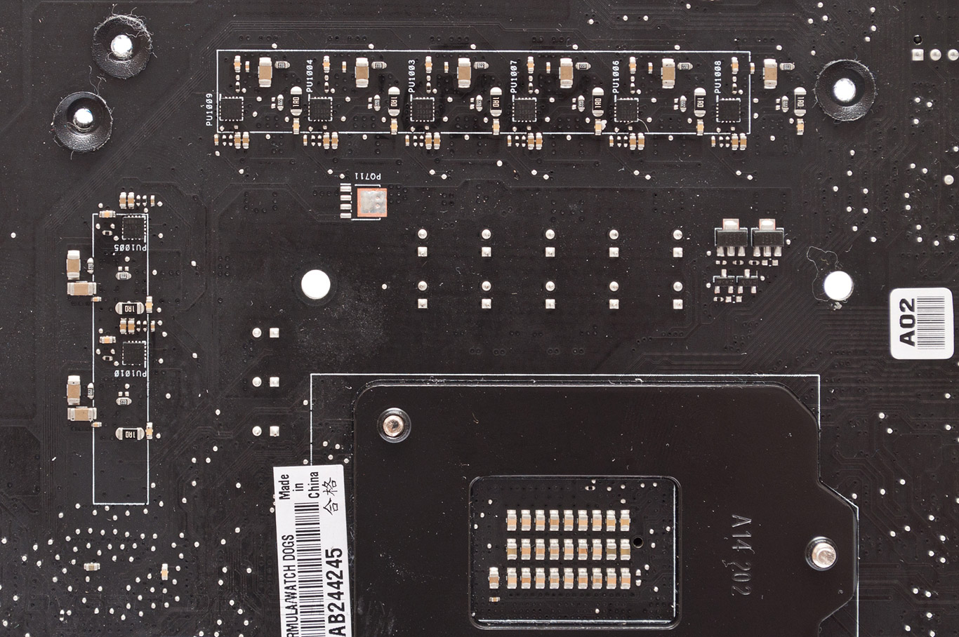 Все основные компоненты силовой подсистемы сосредоточены на фронтальной поверхности РСВ, а с обратной стороны печатной платы находятся лишь восемь микросхем-драйверов. Таким образом, организовывать дополнительное охлаждение этой части печатной платы нет необходимости даже в случае серьезного разгона.