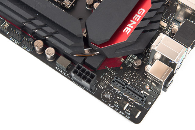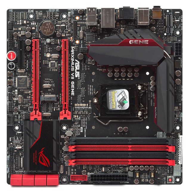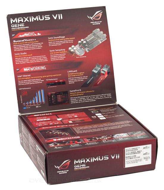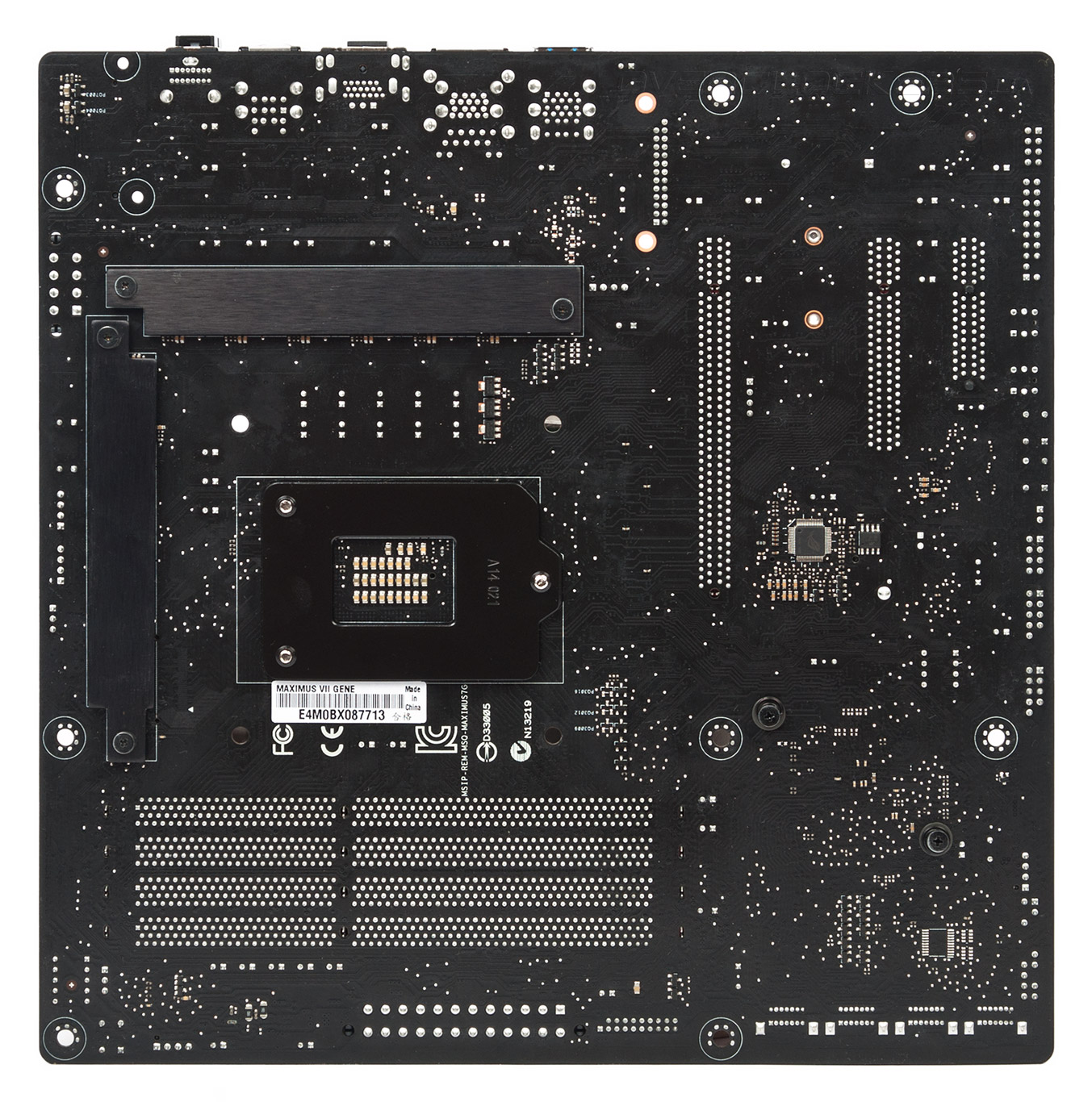 Главными отличиями на фоне предшественницы — Maximus VI Gene — являются изменения в размещении современного универсального гнезда M.2, чей прообраз прежде был реализован посредством отдельно монтируемого переходника, который входил в комплект поставки и устанавливался в районе задней панели. Теперь на том самом месте находится обыкновенный Mini PCI-E x1. Также изменениям подверглась и звуковая подсистема, представляющая собой съёмный модуль, знакомый прежде по обзору Maximus VI Impact — изделия самого компактного размера.