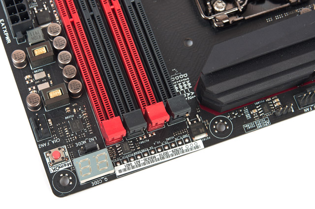 Традиционные шесть портов SATA, поддерживаемые системной логикой, дополнены ещё двумя, размещёнными в углу устройства. Для их нужд распаян контроллер ASM1061. Вдоль правой грани платы находятся пять светодиодов. Сверху — над гнёздами SATA — оранжевый индикатор сигнализирует об активности дисковой подсистемы, а группа из четырёх диагностических элементов красного свечения отображает этапы инициализации базовых элементов системы; все они находятся у гнезда питания ATX.
