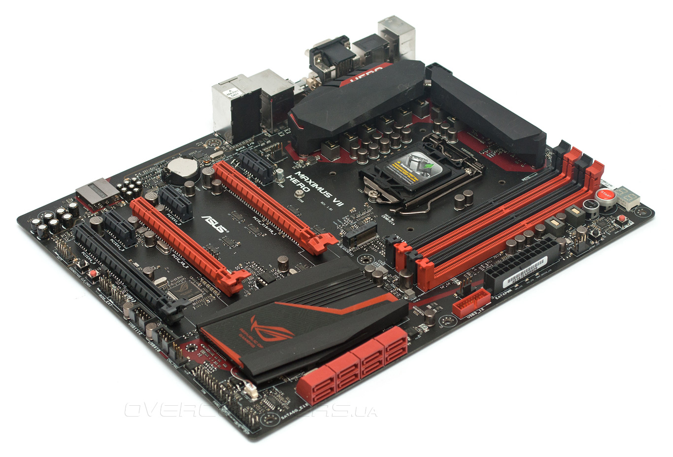 ASUS Maximus VII Hero оснащена четырьмя слотами DIMM для установки модулей ОЗУ стандарта DDR3 суммарным объемом до 32 ГБ включительно. Производитель сообщает о поддержке тактовых частот свыше 3000 МГц, правда, в этом случае решающим фактором становится сам комплект оперативной памяти. Организацию графической подсистемы обеспечивают пара разъемов PCI Express 3.0 x16, которые могут работать по схеме «х16+х0» или «х8+х8». Третий порт PCI Express 2.0 х16 функционирует в режиме х4, но автоматически переключается в х1, как только задействуется хотя бы один из трех слотов PCI-E 2.0 x1 или разъем М.2.