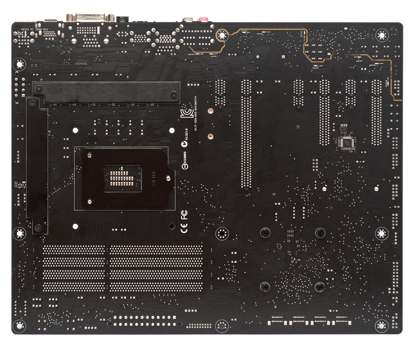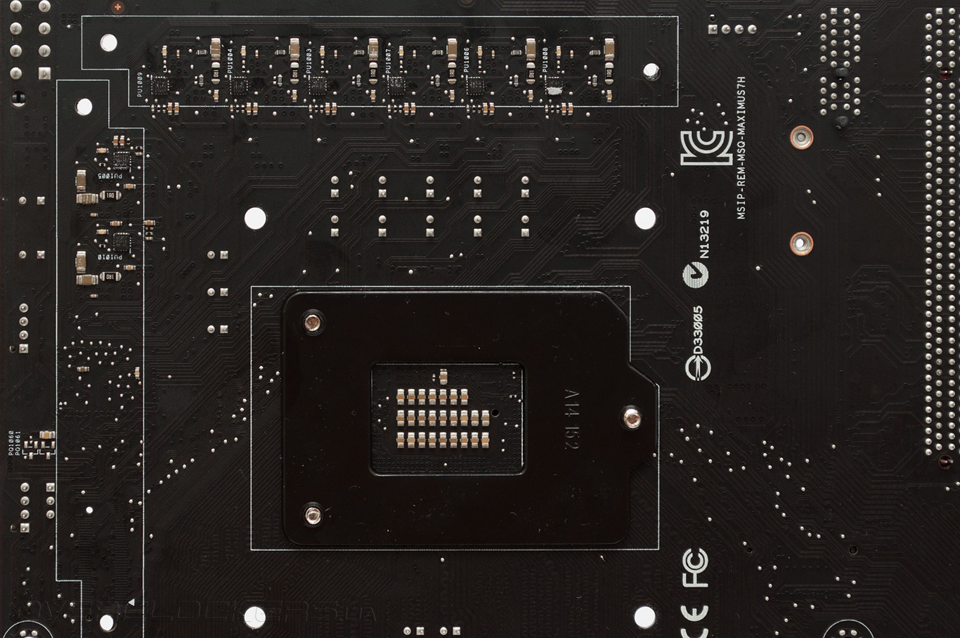 C обратной стороны РСВ в районе процессорного разъема находятся две металлические пластины, какие-либо другие компоненты, мешающие установке кулеров, отсутствуют.