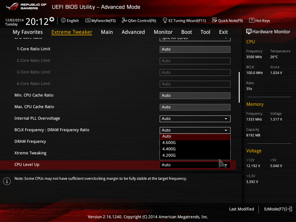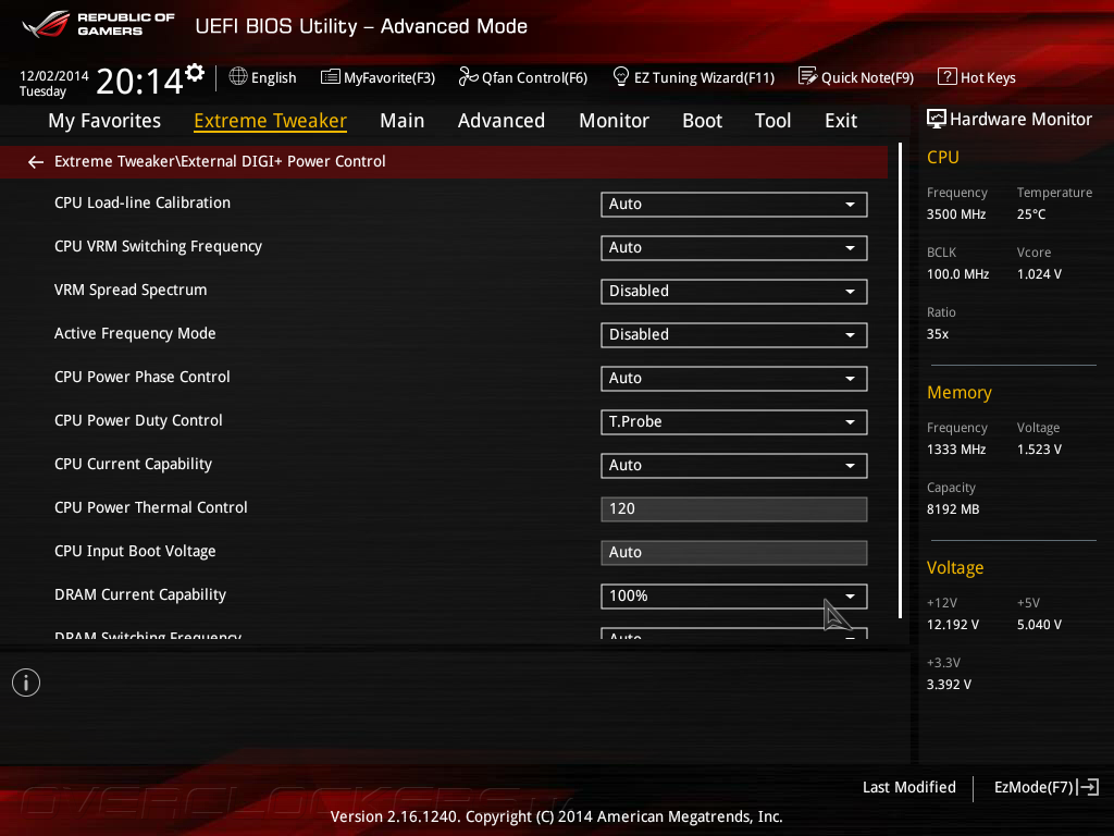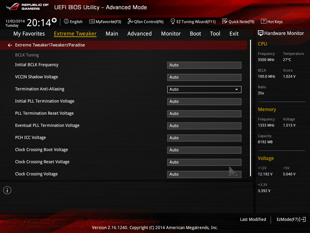В подменю Tweaker's Paradise сосредоточено управление опциями, способными поднять планку максимального разгона, а также регулировки некоторых второстепенных напряжений.