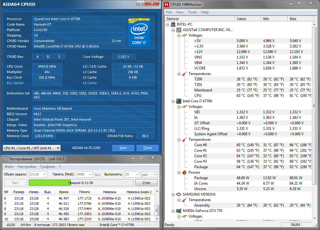 - процессор: Intel Core i7-4770K (3,5 ГГц, 8 Мбайт кэш L3);