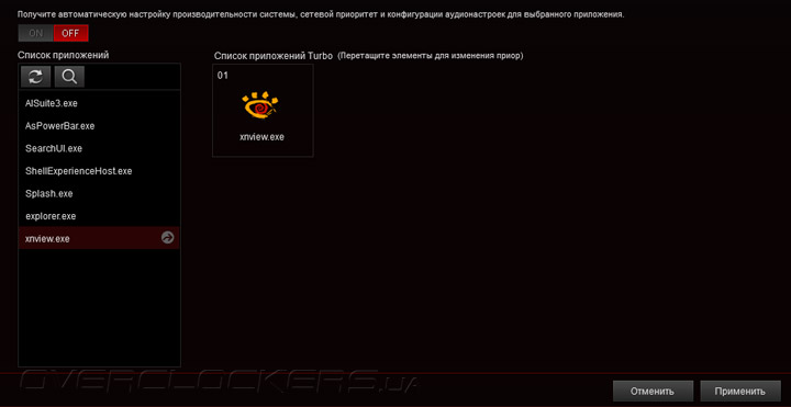 TurboApp способна привязать к выбранному приложению особый режим функционирования системы, куда входят профили работы ЦП, звука, сети и клавиатуры.