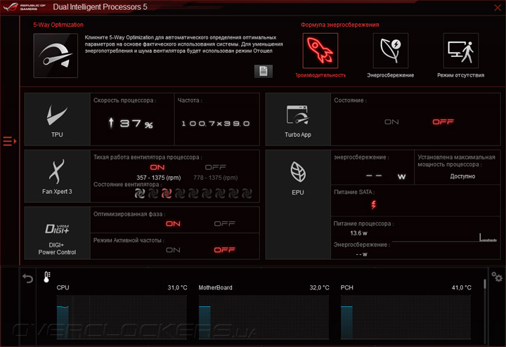 Энергосберегающие технологии активируются в разделе EPU. Большей частью эта утилита будет полезна для настройки системы, когда та нагружена минимально.