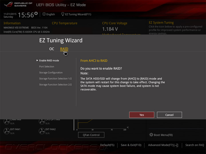 Сперва рассмотрим возможности упрощённого режима настроек, названного EZ Mode. В отношении продукции ASUS набор вездесущий. Можно установить текущие дату и время, выбрать локализацию интерфейса, воспользоваться мастером EZ Tuning Wizard, где находятся сценарии по разгону системы и организации массивов RAID. Доступны для выбора профиль XMP у набора DRAM и готовые сценарии работы системных охладителей. Ещё здесь есть готовые профили функционирования системы, за которыми скрываются технологии TPU и EPU. Словом, ничего необычного относительно рядовых устройств здесь увидеть не получилось.
