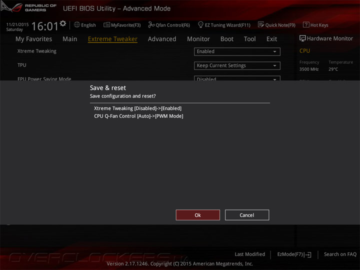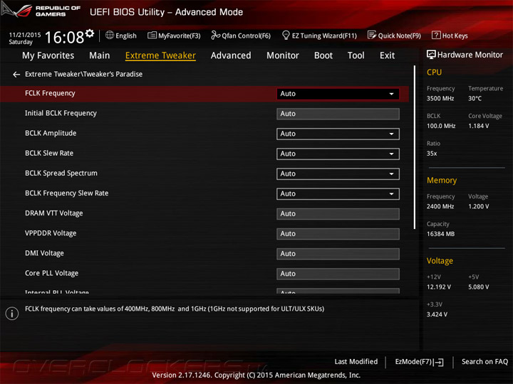 Центральное место занимает Extreme Tweaker — раздел, где собраны все пункты, необходимые для разгона и тонкой настройки режимов работы системы. Изначально запуск UEFI останавливается именно здесь.
