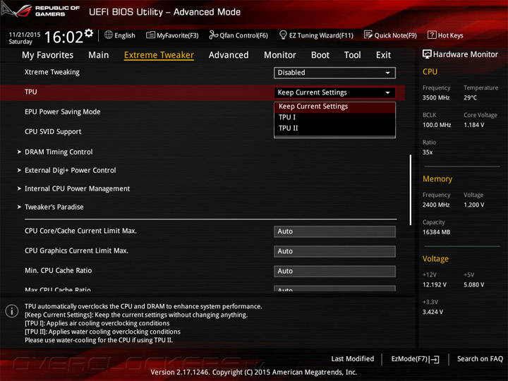 В качестве демонстрации серьёзных возможностей, на первом месте разместили набор Overclocking Presets. Особенно впечатляющим там выглядит последний сценарий, сулящий настройки системы, позволяющие запустить ОЗУ на частоте 4000 МГц. В общем меню имеется особый режим Xtreme Tweaking, таинство его влияния на систему понять непросто. Дальше по списку следует более привычный набор их двух сценариев TPU.