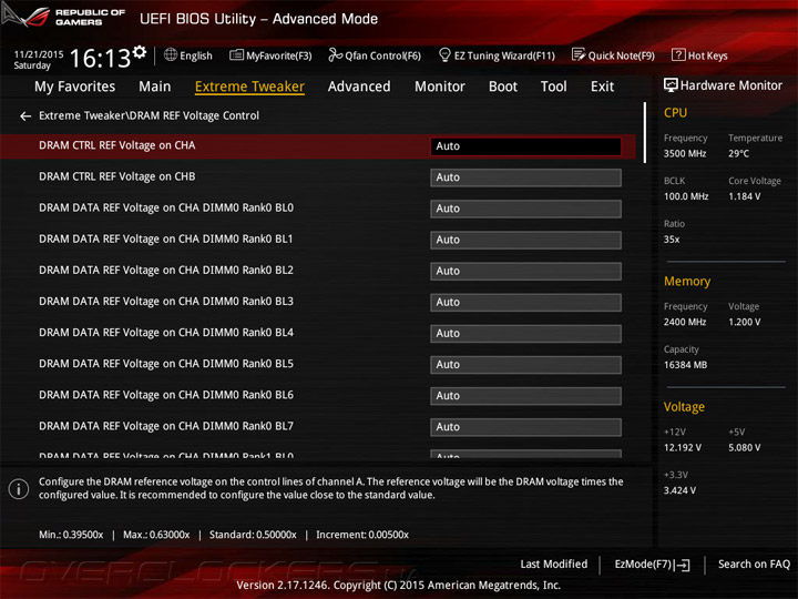 | DRAM Voltage (B) | 1,0–2,0 | 0,005 |