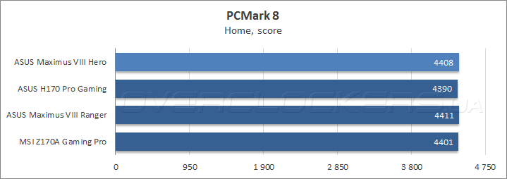 Тестирование в комплексном бенчмарке Futuremark PCMark 8, которое дает четкое представление о быстродействии при выполнении повседневных прикладных задач, показало, что все без исключения участницы обеспечили одинаково высокие результаты.