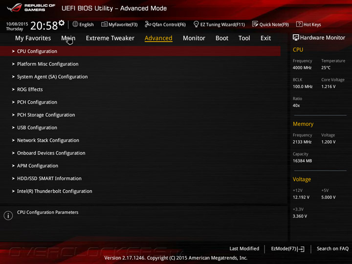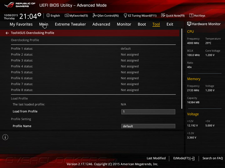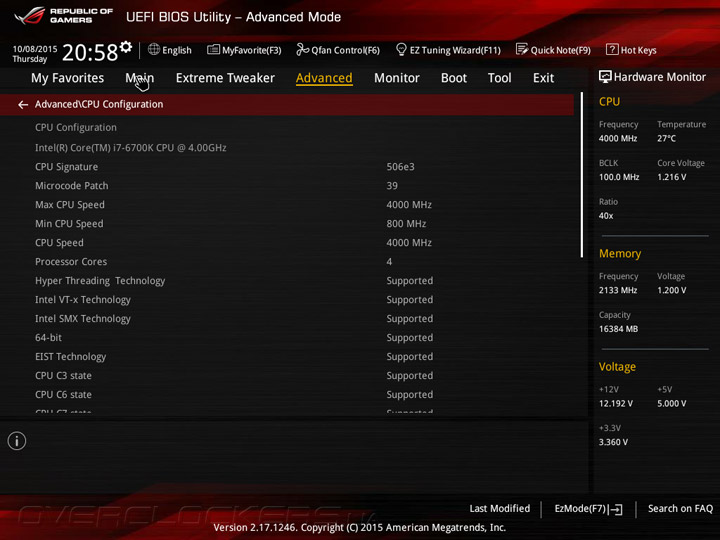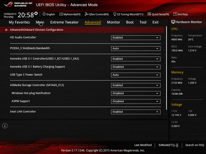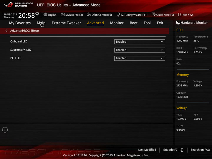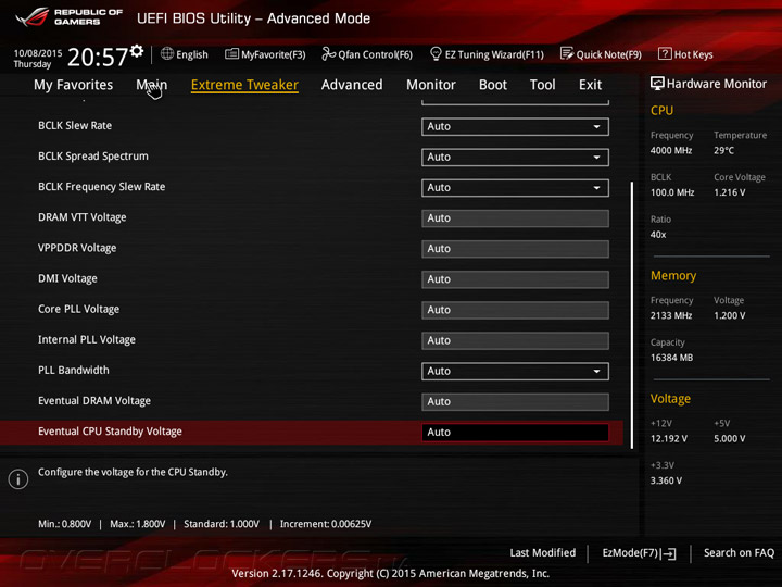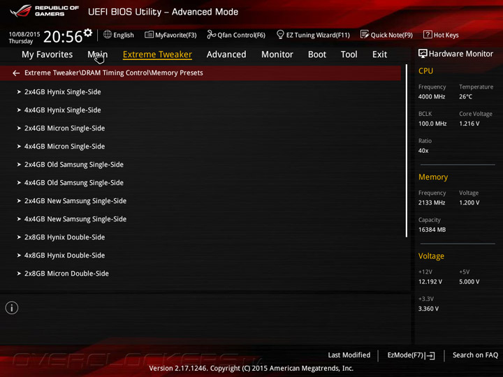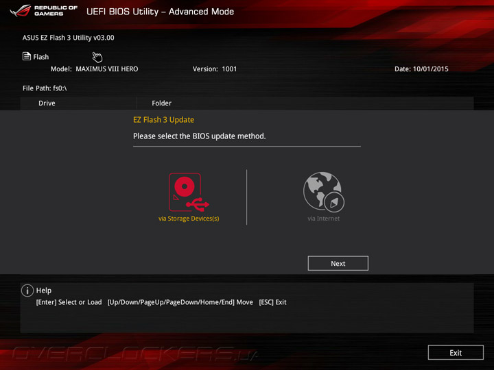 - ASUS Maximus VIII Hero (UEFI Setup 1001 от 01.10.2015);