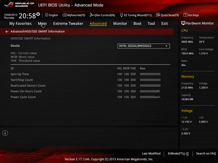 UEFI Setup новинки может похвастаться наличием функции HDD SMART Information для контроля параметров S.M.A.R.T. (Self-Monitoring, Analisys and Reporting Technology) дисковых накопителей.