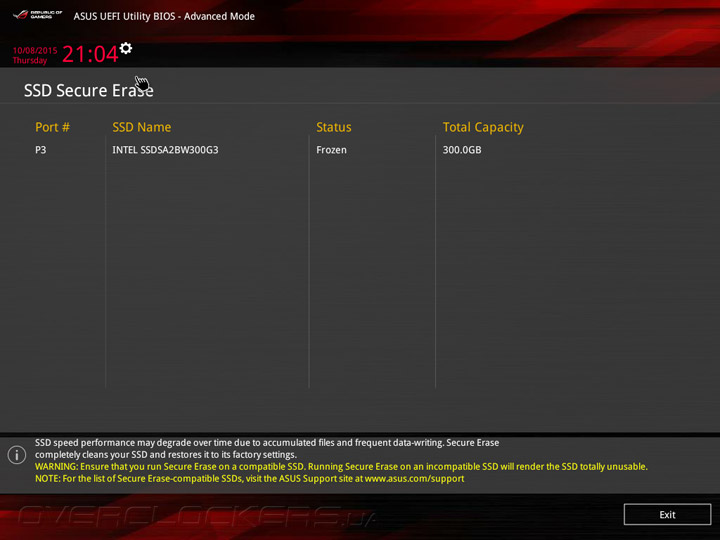 Меню настройки Maximus VIII Hero оснащено утилитой для обновления управляющего микрокода EZ Flash 3 с возможностью загрузки свежей прошивки из Сети, функцией SSD Secure Erase для низкоуровневой очистки твердотельных накопителей, а также возможностью сохранения восьми профилей с настройками.