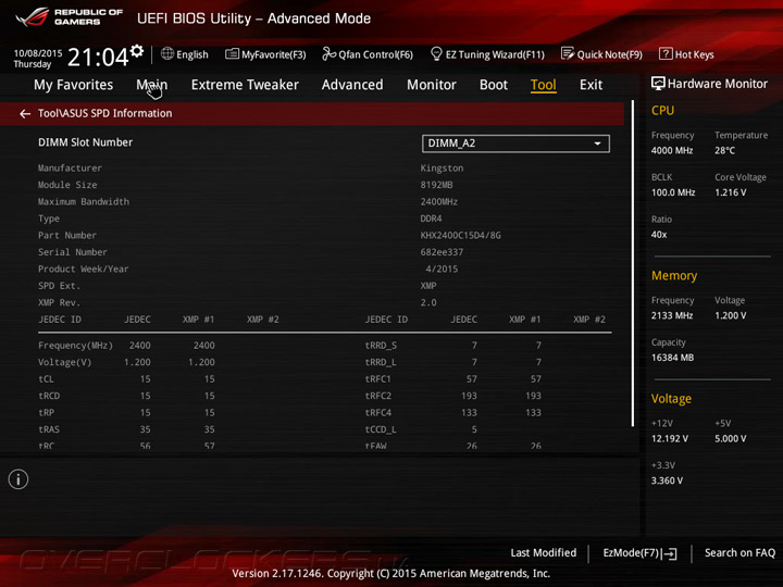 Вместе с Maximus VIII Hero поставляется программный продукт Mem TweakIt для управления таймингами подсистемы ОЗУ. Увы, приложение не справляется со своими обязанностями, но вместо регулировок его можно использоваться для получения подробной информации о режиме работы модулей оперативной памяти.